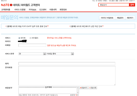 우선 https://cscenter.nate.com/mail/exMailQuestion.jsp