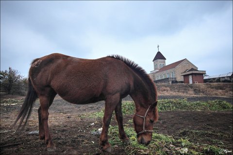 45. 섭지코지의 상징을 배경으로 제주도의 상징 말님이 식사를 하고 계십니다. ㅎㅎ