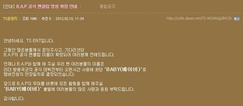 B.A.P 공식 팬클럽 명칭 확정=BABY