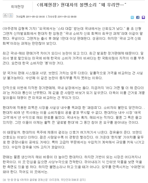자동차의 경우, 가격차이에 대한 논란이 끈임없이 제기됬었고, 제기되고 있는 상황이지요.