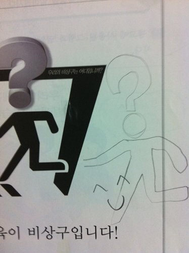 우리는 4학년때 사회책에 나온 그림에 낙서를함.