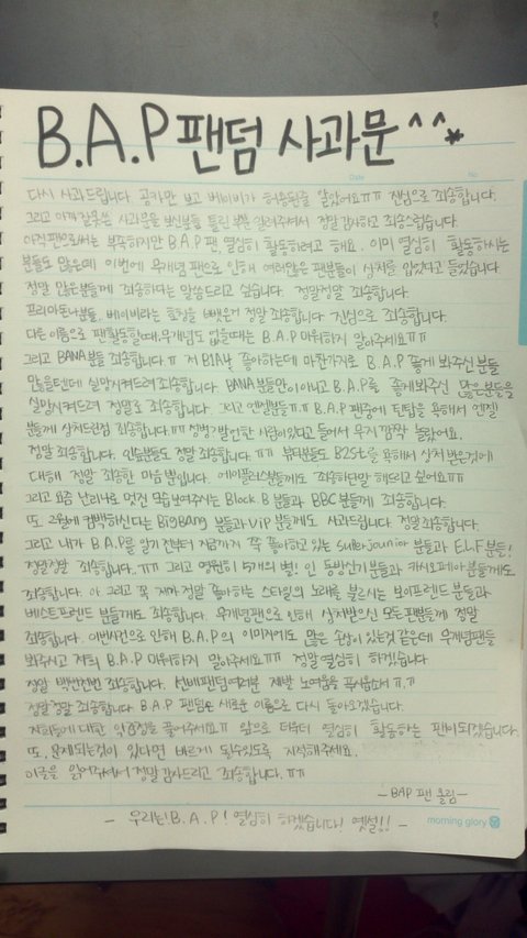 ★★★다시사과문올립니다.(B.A.P팬덤사과문)★★★