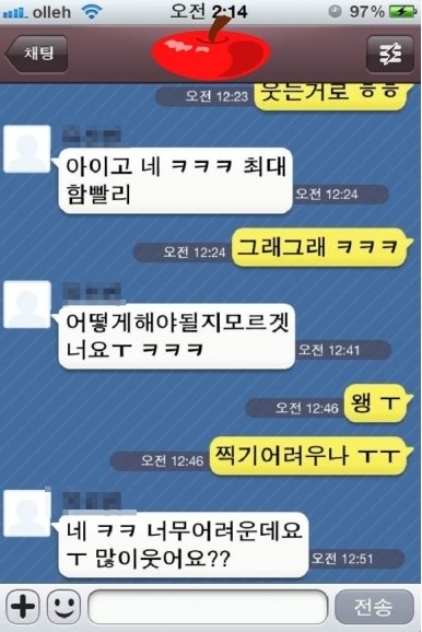 훈훈이와 글쓴2와의 카톡임