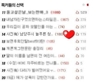 드디어 톡커들의 선택 14위에 진입했음!!!!