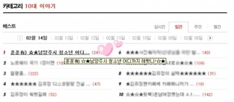 10대이야기 1위까지 하게 되었숨 ㅠㅠ