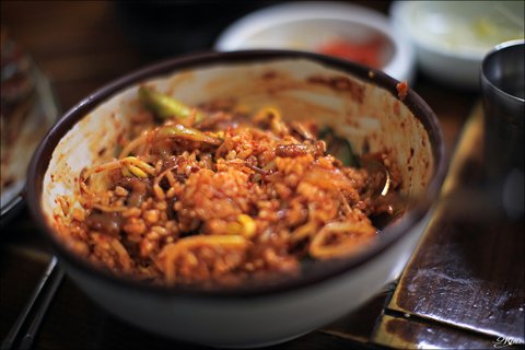 12. 낚지볶음에 비벼서 소면을 먼저 먹고, 이젠 흰 쌀밥에 콩나물 듬뿍 넣고 비벼 먹었어요.