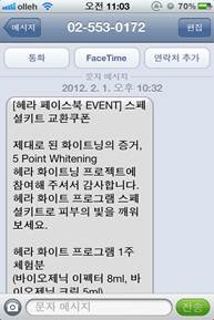 화이트닝 프로젝트에 참여한 후, 제 휴대폰 번호를 입력하고화이트 프로그램 모바일 키트 교환권을 받았는데요.이벤트에 참여해서 제 얼굴의 5point 화이트닝도 밝혀 보고화이트 프로그램 키트 교환권도 받으니까참여하기를 잘 했다는 생각이 들더군요~