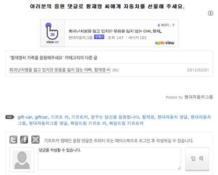 응원댓글이 총 300개가 달리면 기프트카를 선물할 수 있다고 합니다.