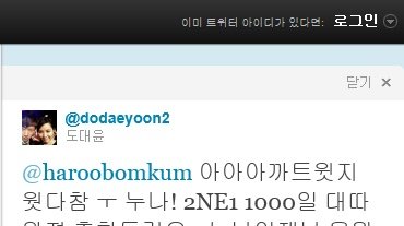 ->아아아까트윗지웟다참 ㅜ 누나! 2NE1 1000일 대따 완젼 축하드려요~누나언제나 응원하고잇는거알져? ㅎㅎㅎ :)