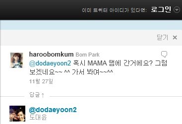 박봄-> 혹시 MAMA땜에 간거에요? 그럼 보겠네요~~#^^ 가서 뵈여~~^^