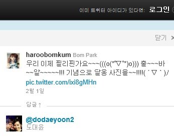 박봄-> 고마워요~~~^^ 대윤군도 홧팅~~~~!!!( ´ ▽ ` )ノ