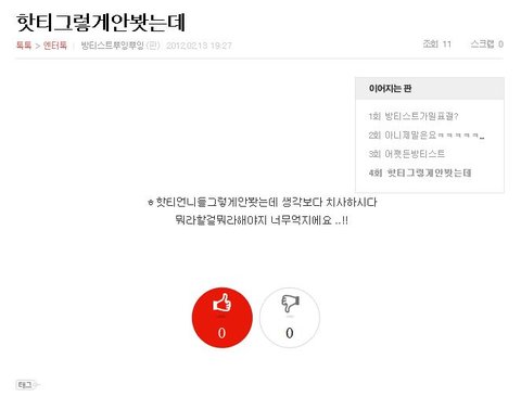 그런데 내가 혹시나해서 잘안들어오는 판이지만 그래도 우리욕이있을거같다는생각이 들어서