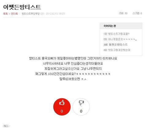 이글은 '방티스트뿌잉뿌잉'이라는 닉네임으로 한분이 연속해서 쓰신ㄱ글입니다.