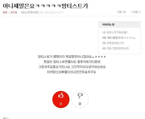 근데 서이분들 글중에 방티스트라는 글이잇는거임.