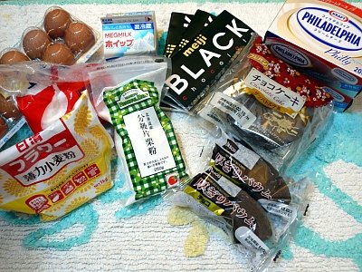 달걀, 설탕, 박력분, 전분, 휘핑크림, 초콜렛, 초코시트용빵, 크림치즈