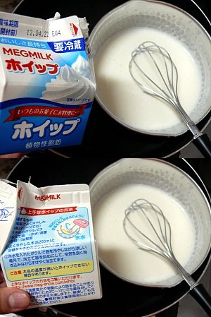 생크림이 품절이라 아쉬운대로 휘핑크림 만드는 우유(?)같은걸 샀는데 크림 만드는 방법을 보고 따라함.