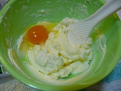 어느정도 말캉해진 크림치즈에 설탕을 4~5스푼 넣어 휙휙 저어 풀어주다가 계란 하나를 투하함.