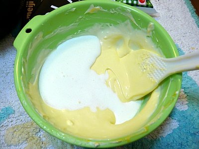 계란넣고 저어놓은 반죽에 위에서 만든 휘핑크림을 넣고 다시 저어줌.
