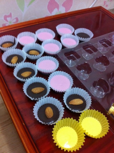 일단 초콜릿이 굳으면 다른 초콜릿을 그위에 더 할거에요 ^^