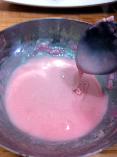 우유 세스푼정도와 딸기향초콜릿 그리고... 화이트초콜릿을 잘 섞어서 중탕으로 녹여주세요