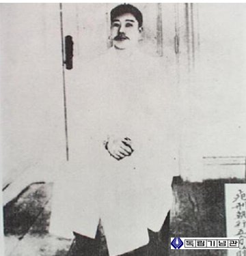 순국 5분전에 어머니가 지어 보낸 옷을 입고 있는 안중근 의사.
