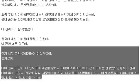 한국에 계신 아빠한테 정말 미안한데.나 진짜 너무 힘든데.