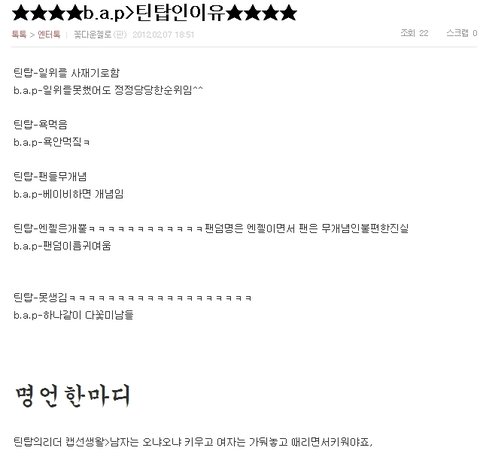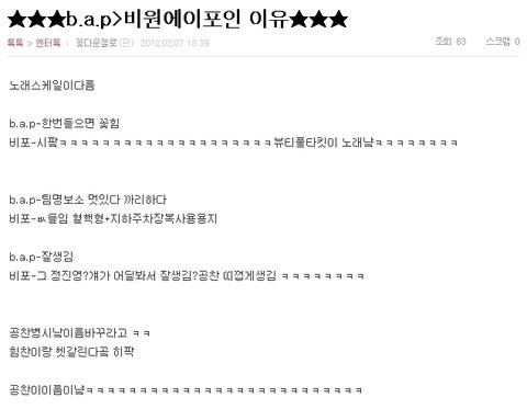 솔직히 비에이피 나오고 무개념B.A.P 팬분들이 많다는건 알고있었는데