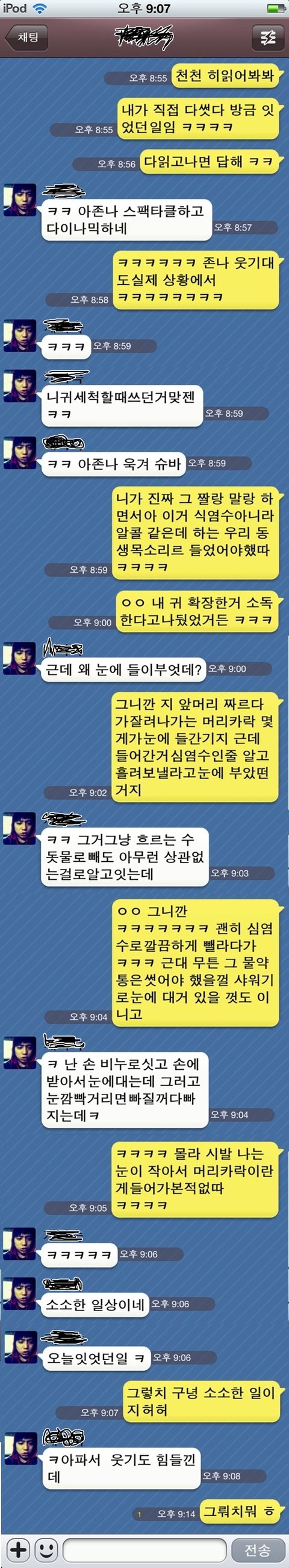 ↓ 이건 그냥 친구랑 그일 있고난뒤에 바로 설명하고 카톡한거 ㅋㅋㅋㅋ