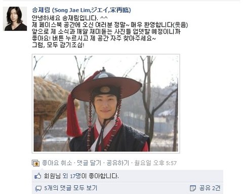 송재림 페이스북 오픈 기사보고 바로 http://www.facebook.com/official.sjl 주소로 들어가봤더니