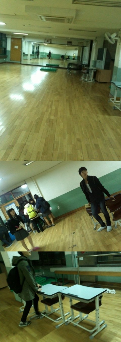 이건 연습할때쓴 책상과 의자를 무용실 옆 음악실로 옮기고 정리하는 장면!