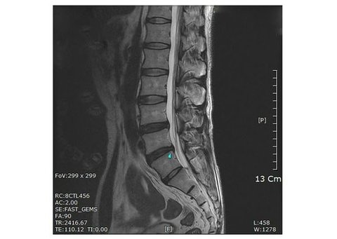 ▲ 키 173cm, 몸무게 63kg의 체격을 지닌 디스크 환자의 MRI 사진.