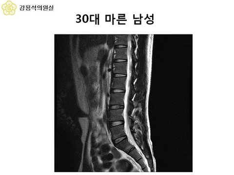 아무도 안계실걸요. 근데 저 MRI 사진은 휘어져있습니다. 이런 몸의, 이렇게 마른 모습을 보이는 사람의 허리가 저렇게 휘어지는것이 가능할까요?