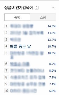 ㅎㅎㅎㅎㅎ 주부님들의 성원에 제가 감사드리며ㅎㅎ 주부님들 인기검색어는 1위가 해품달임![]()