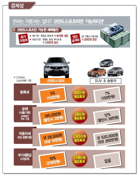 1,2,3번을 고려했을 때, 제게 가장 적합한 모델은 코란도스포츠라는 생각에, 조금씩 자료를 모았습니다.