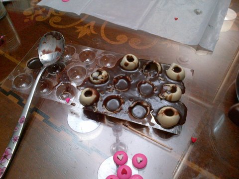 '쨌든 21개중에 10개라도 살렸다..아..괜찮다..남은 초콜렛국물은 유산지에 굳혀서 그냥 초콜렛으로 만들어야겠다..'