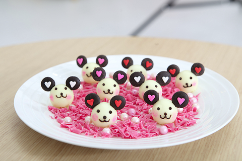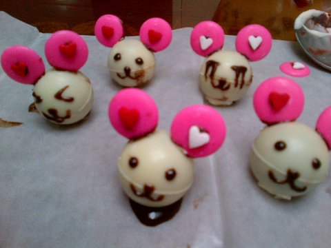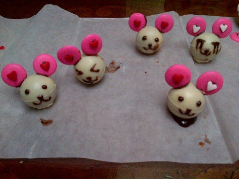 '아! 쩔수없이 그냥 핑크색 초콜렛으로 귀를 만들어줘야겠구나..'