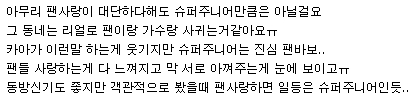 우리가 하는건 뭐 팬사랑이 대단하다는건..뭐 그런것도 아니고 저흰 다만 애정표현 하는거잖아요 그죠?