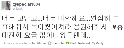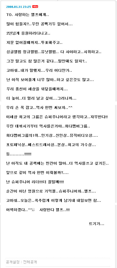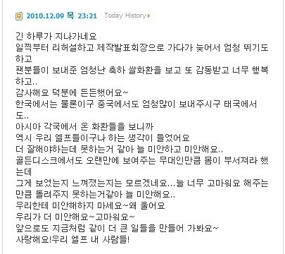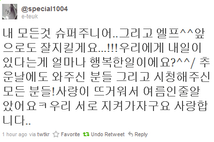 “항상 부족한 저와 슈퍼주니어를 사랑해주시는 우리 엘프.”