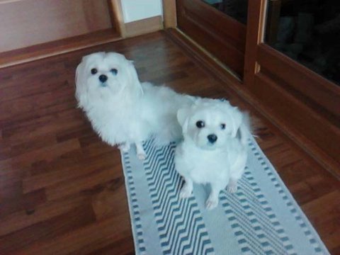 봄이와 진주 ^^ 봄이는 저희 마미말티즈의 둘째아가 입니다!!!!!!!!! 엄마닮아서 이뿌다능 *.*