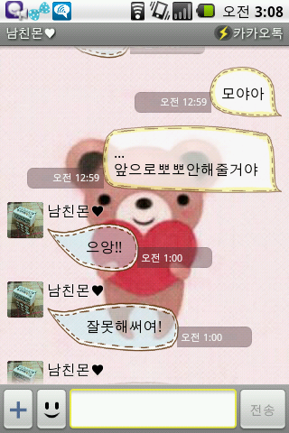 애칭얘기 엄마한테 카톡 걸린얘기 스킨십얘기