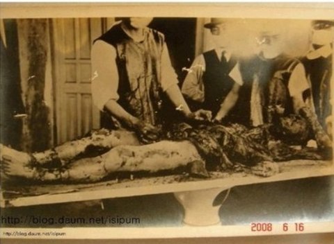 군복바지차림으로 팔로군이거나 항일독립군포로로추정 복부를갈랐다.