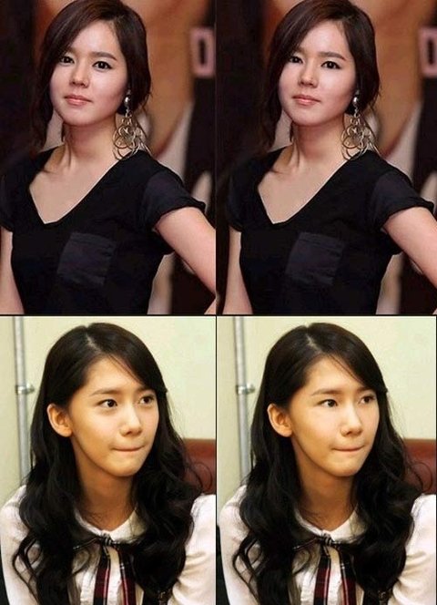 사진 속 여배우들은 그녀들의 눈매를 더욱 귀엽게 부각치켜주는 애교살이 제거된 모습으로