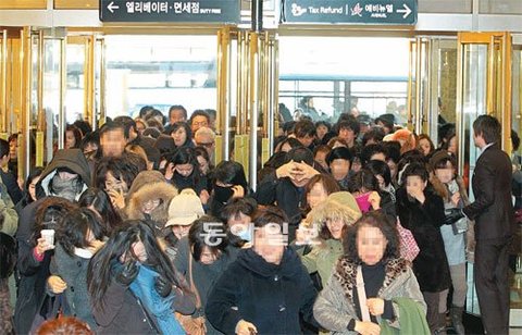 200억 원어치의 이른바 명품 잡화 세일이 시작됐다. 17일 오전 서울 중구 소공동 롯데백화점 본점에서 열린 '에비뉴엘 해외패션 대전'을 찾은 소비자들이 백화점 개장과 함께 입장하고 있다. 코치, 에트로, 발리, 멀버리, 돌체앤가바나 등 해외 패션브랜드의 이월 상품은 30∼70% 할인 판매된다.