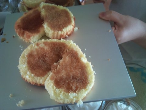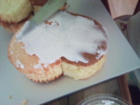 칼로 생크림을 발라줍니다.(생크림만 1시간동안바름