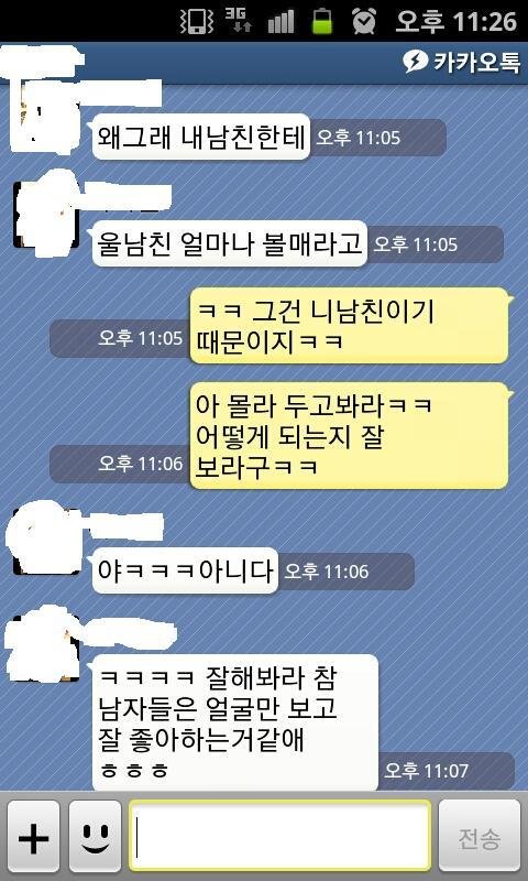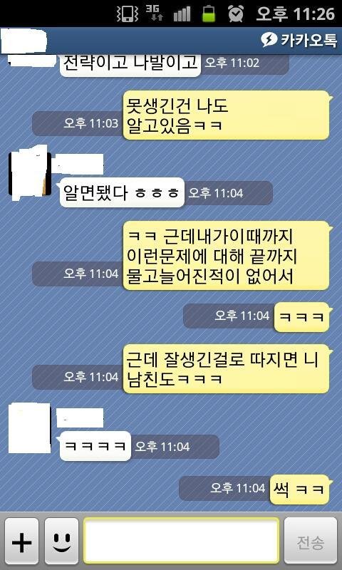 제가 니 남친도 썩...(사실 저도 욱해서 이런 말 했습니다. 제 외모를 까니까)이라고 말하고 나니 그걸 또 지 남친에게 바로 전화해서 이야기 해줬나 봅니다.