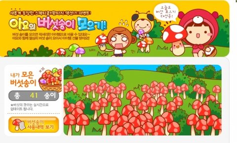 먼저 버섯송이 모으기! 이건 옛날에는 없었는데 언제였던지는 기억이 안나지만