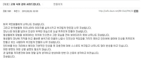 그리고 한국분들께 우리나라의 이미지를 실추시키고 부끄럽게 만든점 너무 죄송합니다.