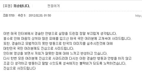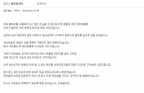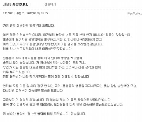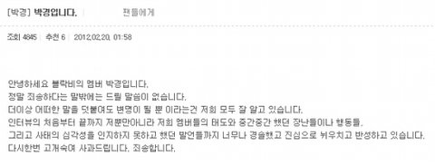 BB가 이번일로 많은 깨닮음과 여러분의 말씀에 귀기울이는 아이돌이 되어 돌아올것이라고 믿습니다.