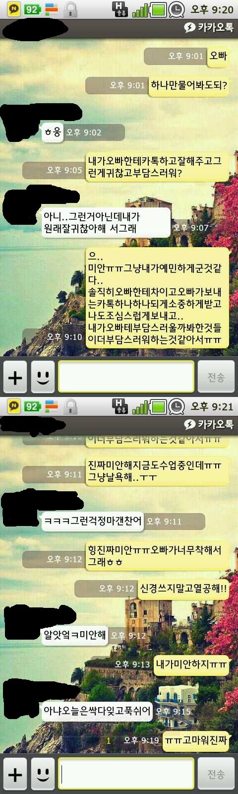 그다음날 저는이미 자존심따위 하늘로 날려버리고 또카톡을 보냈어요. 잘잤냐고 아침은 먹었냐고..