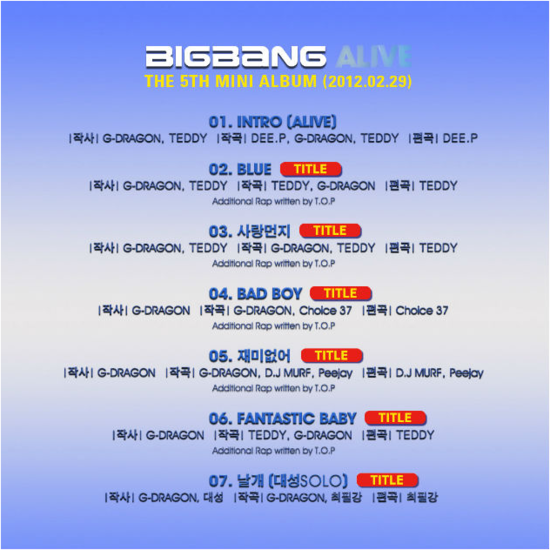 역시 기대했던 만큼 빅뱅은 엄청나네요. 이번 앨범은 ‘블루’ 뿐만 아니라